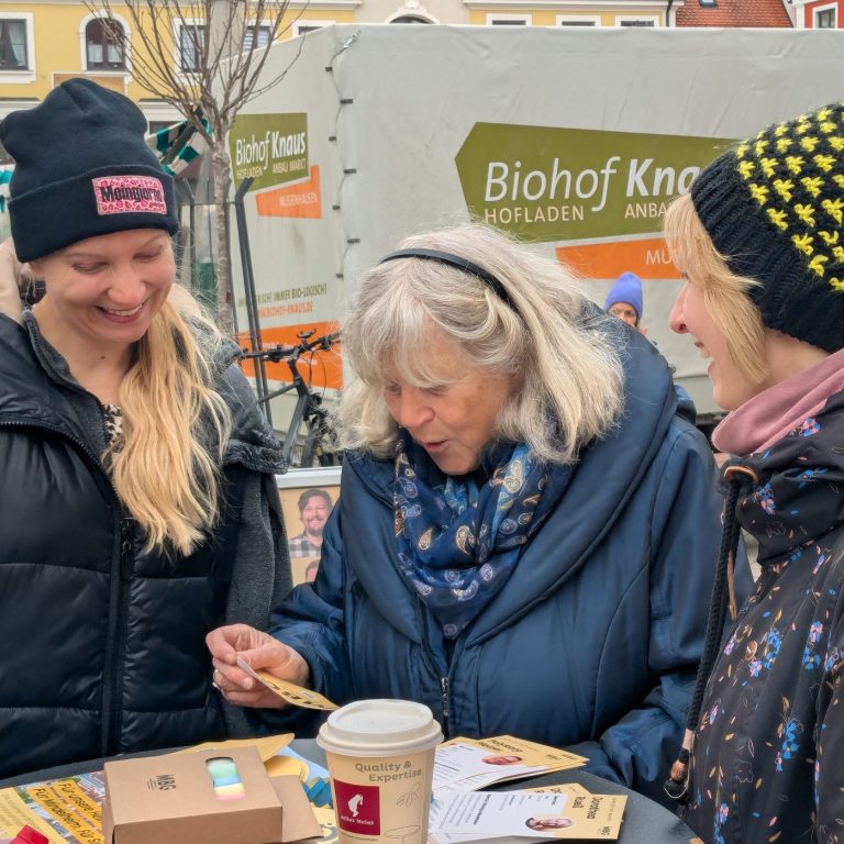 Viele Marktbesucher suchten das Gespräch mit uns und auch der Austausch mit den anderen Parteien und deren Kandidatinnen und Kandidaten für den Stadtrat war konstruktiv.